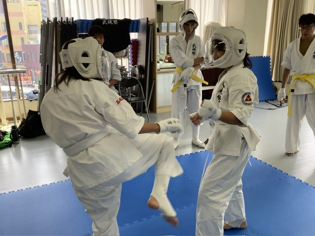 コウタ君とアレク君。この2人は余りにもタラタラやるので何回も連続でやらせました。友達同士で仲良くするのは良い事ですが、組手では逆です。全然、進展がありません。他の組が稽古出来ないので、隅で延々とやらせました。