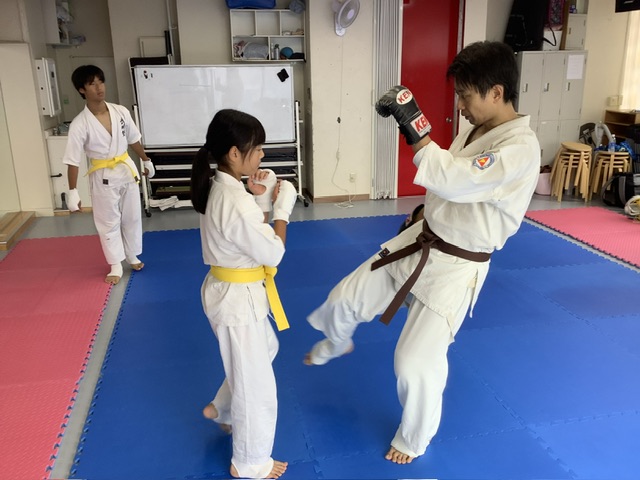 蹴った方が痛い!ブロックされただけでも痛い!おじさんの体は硬いんだよねー。ミオちゃん、ファイト〜^_^