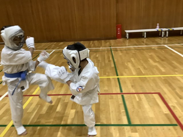 キックミット後は組手稽古。スパーリングではヤマト君は受けに回って貰ってます。