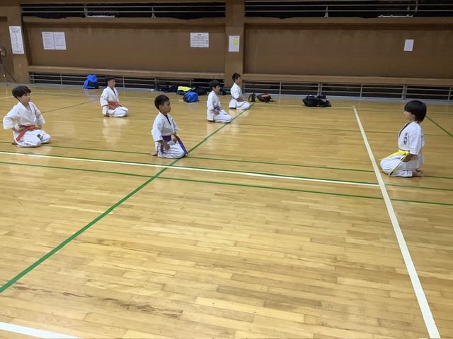 野外ランニング後は体育館へ移動。振り替えで鈴木様ヤマト君も参加。6名での基本稽古へと進みます。