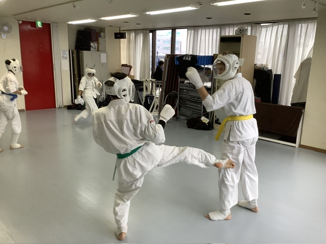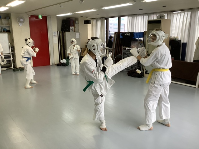 組手稽古ではスパーリングを5R。その後に現時点でフルコンタクト大会に出たい人のみ1組ずつ前に出させてやらせました。このクラスは多いです。そして、やはり1組ずつだと緊張感があるようです。来週も時間を作ってやりたいと思います。