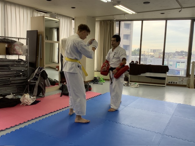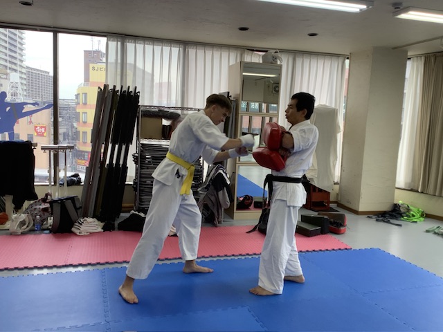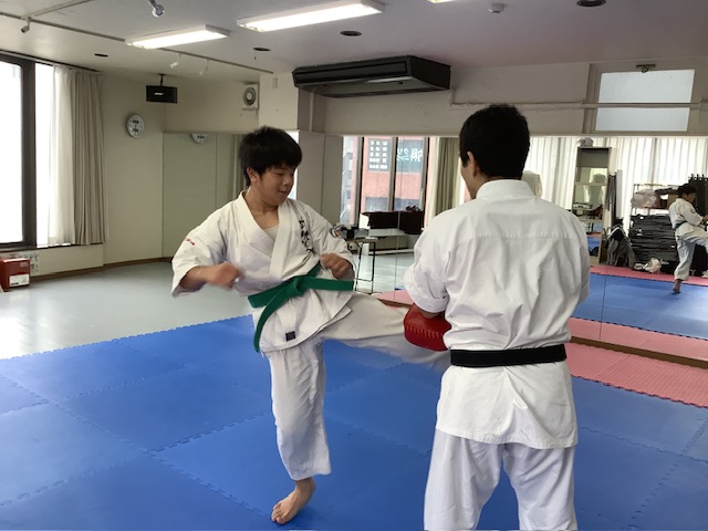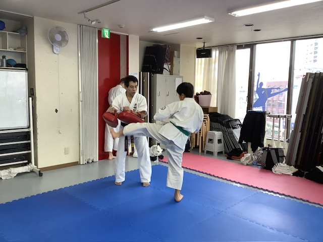 基本稽古、移動稽古、キックミットといつもと同じ稽古を行い、組手稽古。スパーリングは2分で最低3Rを行いました。体調が悪く無い人は追加のスパー。