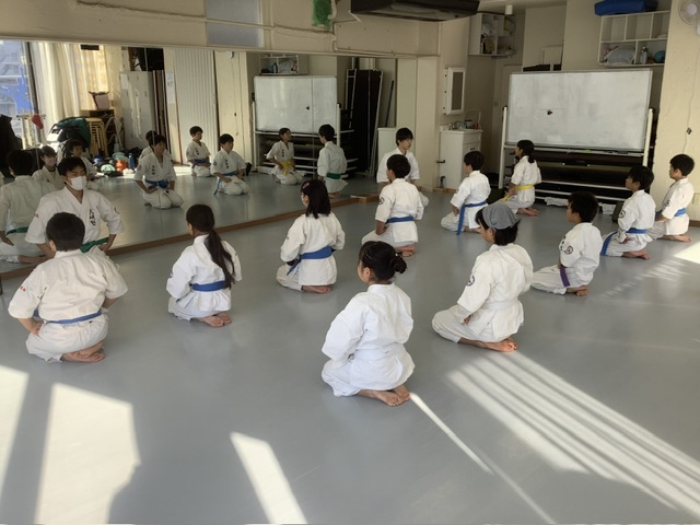 今日はJR稲毛駅前のスタジオアドバンスで午前稽古、少年部からです…、集まりが少ないです。