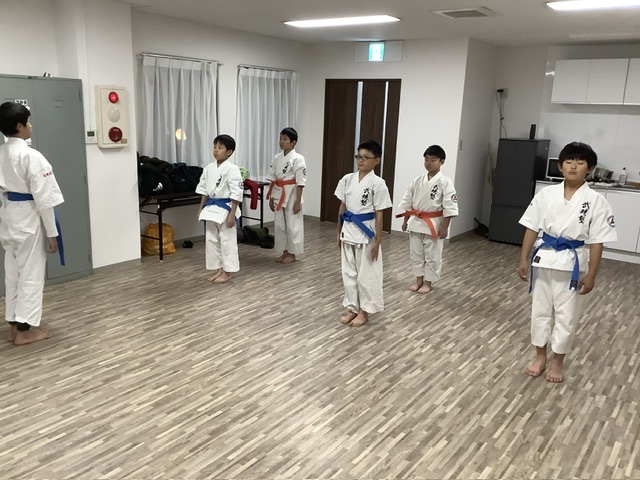6名での稽古。「正しく立つ」の写真。力み過ぎて顔が上がってる子もいます。これはリラックスして脳を安定させる作業だからな(^_-) 軸を作って力を抜けよ〜^_^