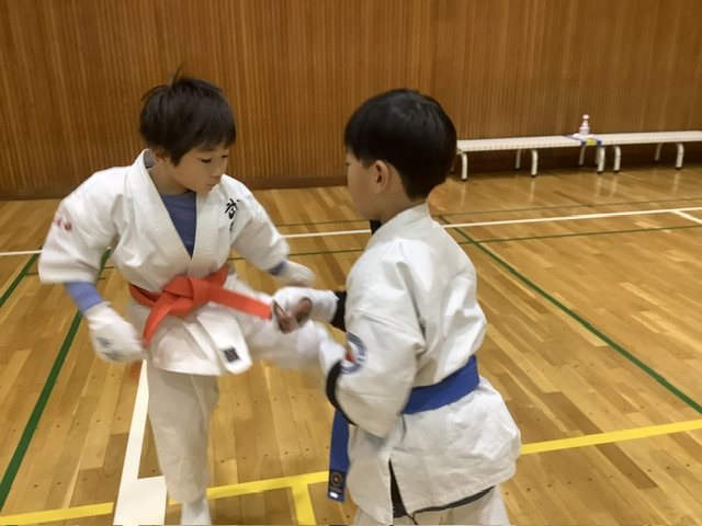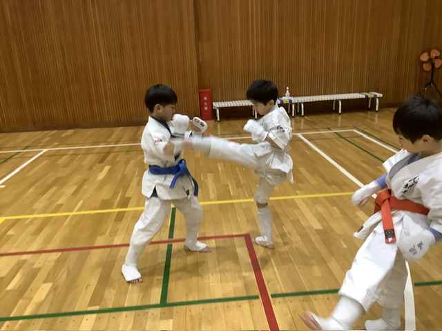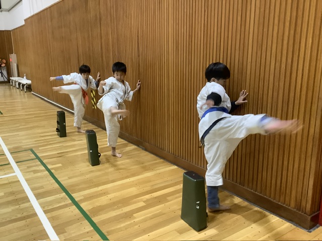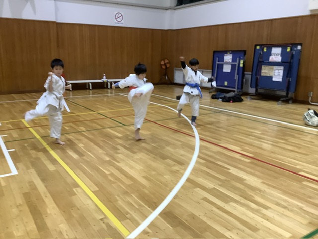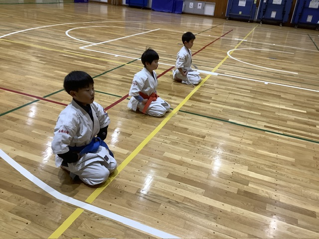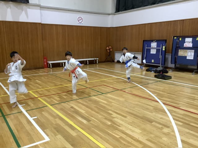 今日は穴川コミュニティーセンターでの少年部からです。今日はカイスケ君が振り替えで3名での稽古。