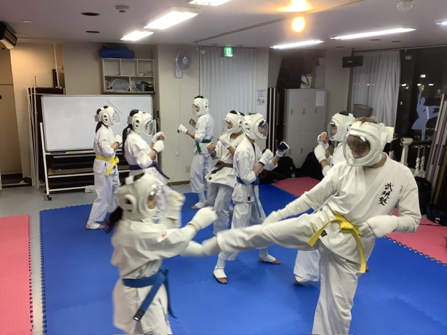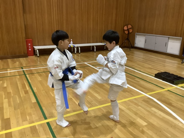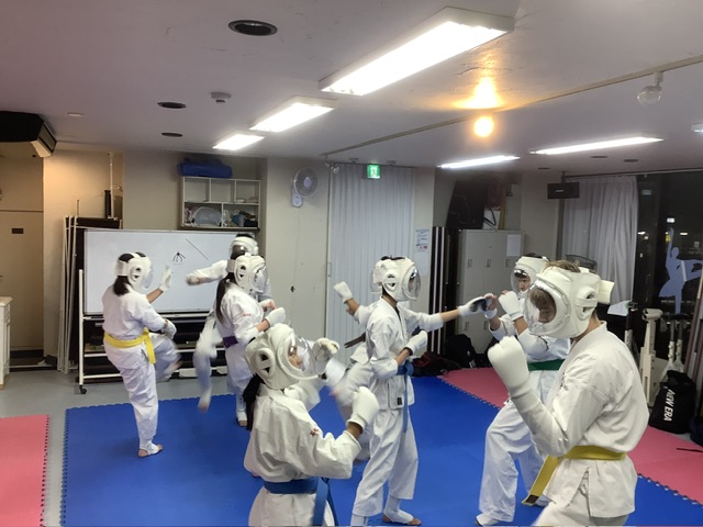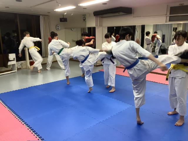 このクラスも気合いが入りまくっている基本稽古。その後は移動稽古。しかし、回し蹴りでは膝の引き上げが低くて、抱え込みがなってない(`_´)ゞ