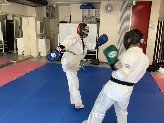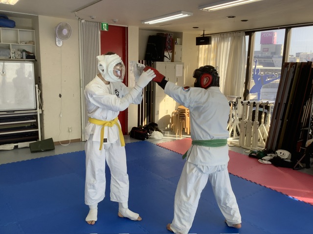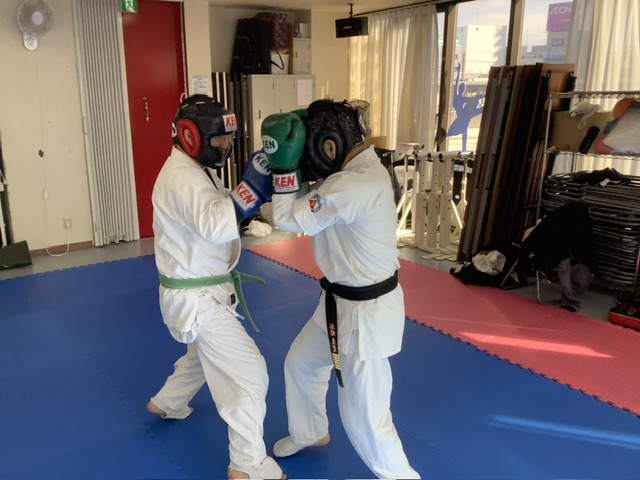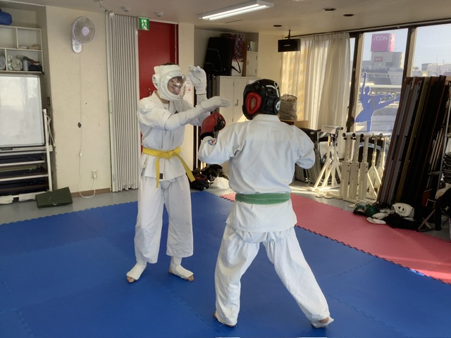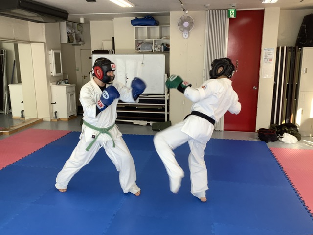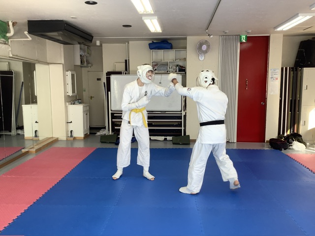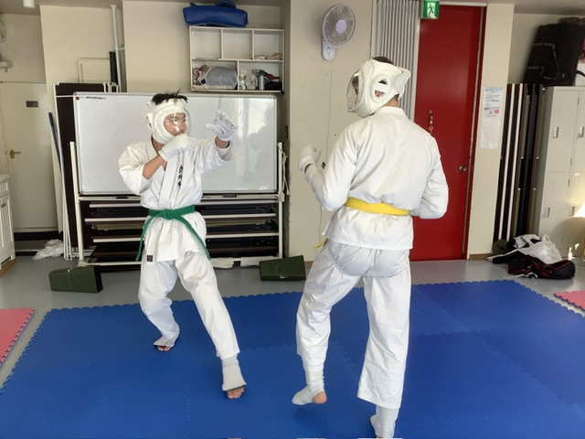 スパーリングです。アレク君と加来君。