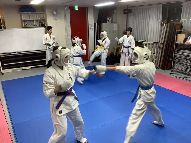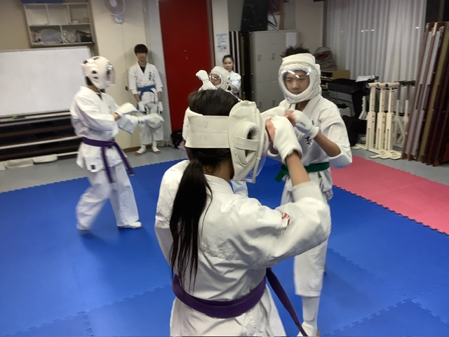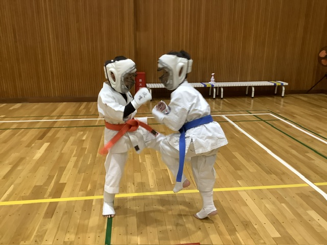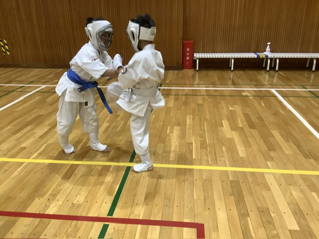スパーリングは2組ずつ。手前はマキちゃんとキョウスケ君。