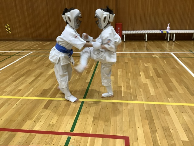 基本稽古が終わると型稽古。カイスケ君、これもお姉ちゃんから教えて貰ったとの事で大変 上手です。