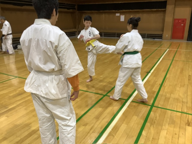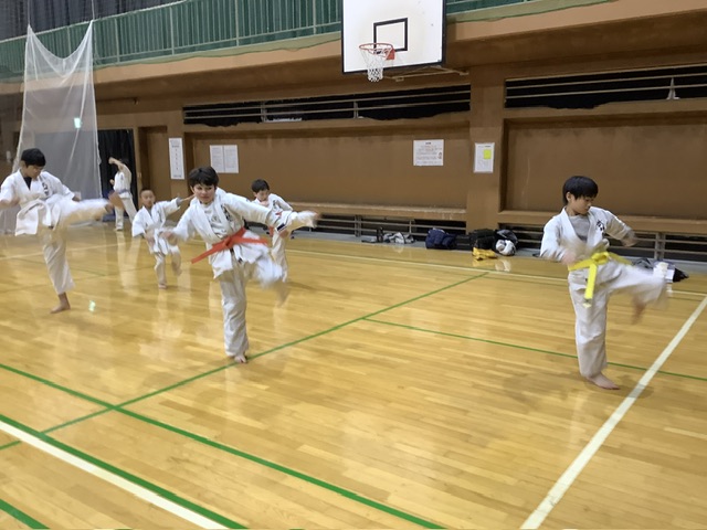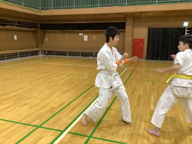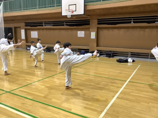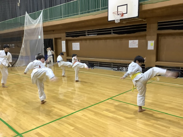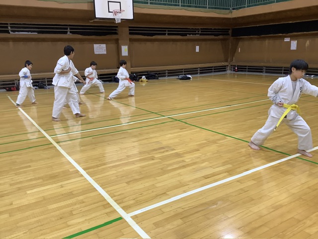 今日は移動稽古の後に型稽古。コウキ君、ロニン君、後ろ脚を伸ばせよー。