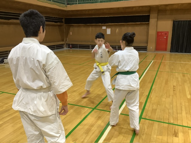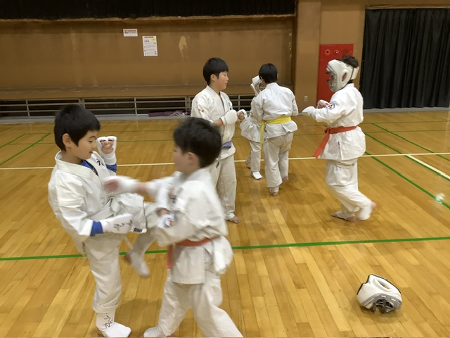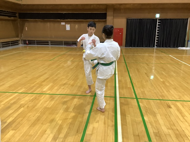 ユウガ君は組手稽古を始めたばかりなので、限定組手。