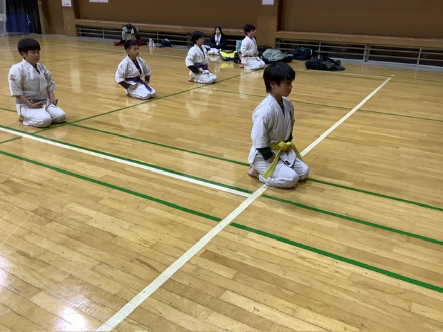 今日は幕張コミュニティーセンターでの少年部です。6名での稽古。サオリちゃんが稽古前の遊びで転んで床に顔面強打(*_*) 端で休憩中です。