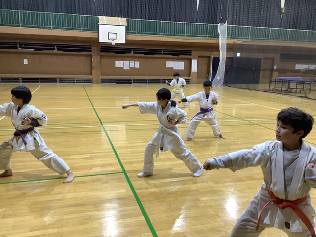 タカヒロ君はパンチだけ。先週の土曜日の野球の練習中に足首を剥離骨折したとか(°_°) とても、審査どころではありません。なので、稽古では上半身のみの稽古。