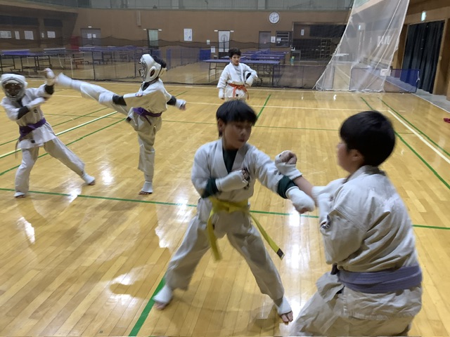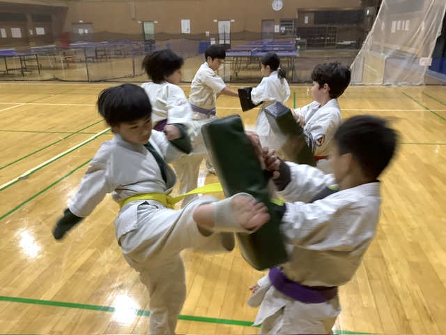 ユイト君、強烈な蹴り!奥の組みのタカヒロ君はパンチだけ。