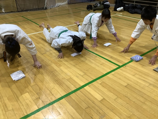 通常の拳立てや腕立て伏せを行った後に指立て伏せをやらせました。マトモに出来たのはヒカリちゃんだけ(´ω`)