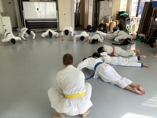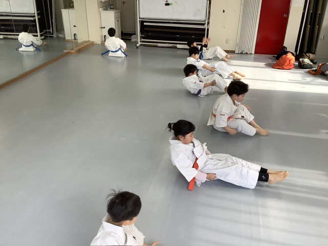 さて、本日の稽古。まずは1部の少年部からです。腹筋。今日は休みが多いです。