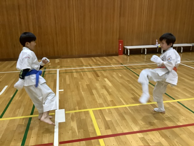 基本稽古後は組手稽古。いつも組手の時間が少ないので、今日は組手稽古から始めてみました。