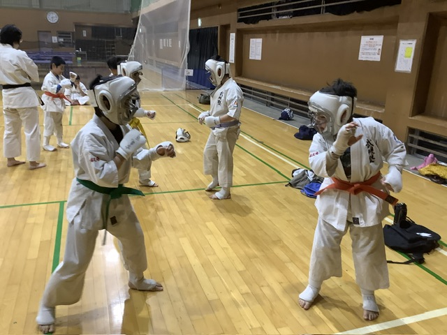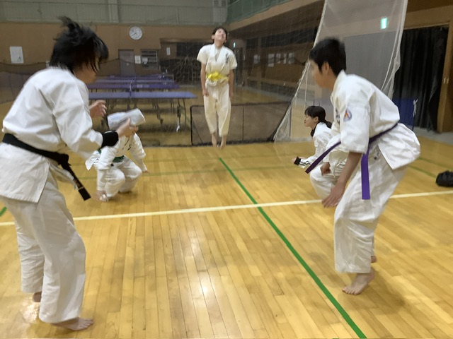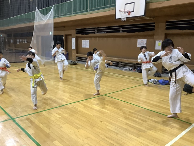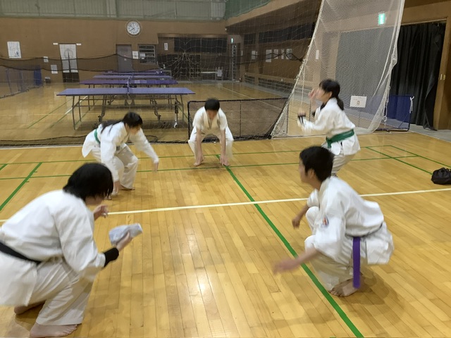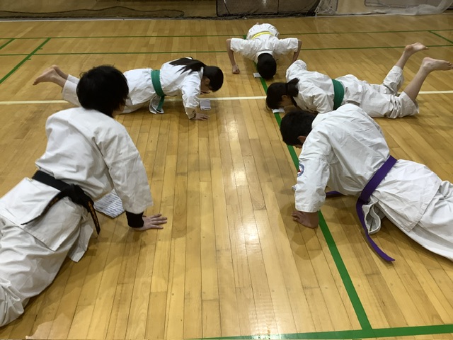 2部。基本稽古、移動稽古、型稽古と進み、体力補強トレーニング。ジャンピング・スクワット30回。