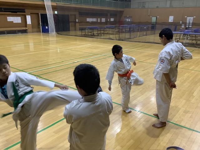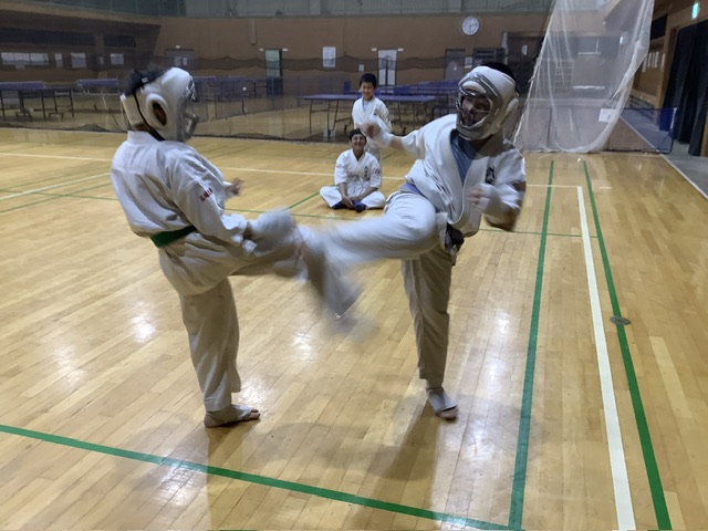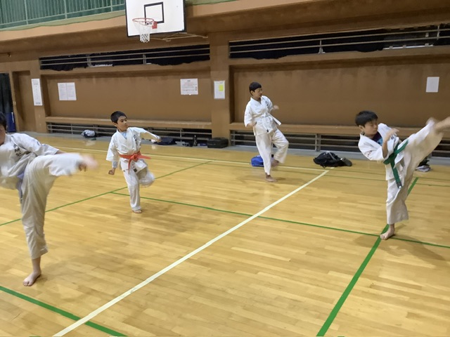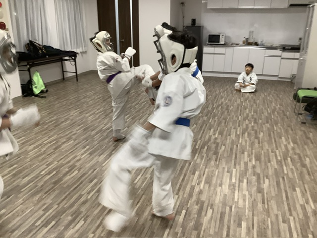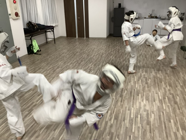 移動稽古。回し蹴り。