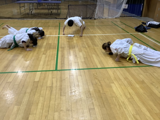 移動稽古後は体力トレーニング。