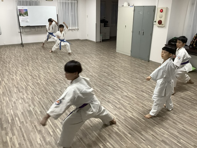 型稽古。ワクウ君、もう少しで覚えられるね。