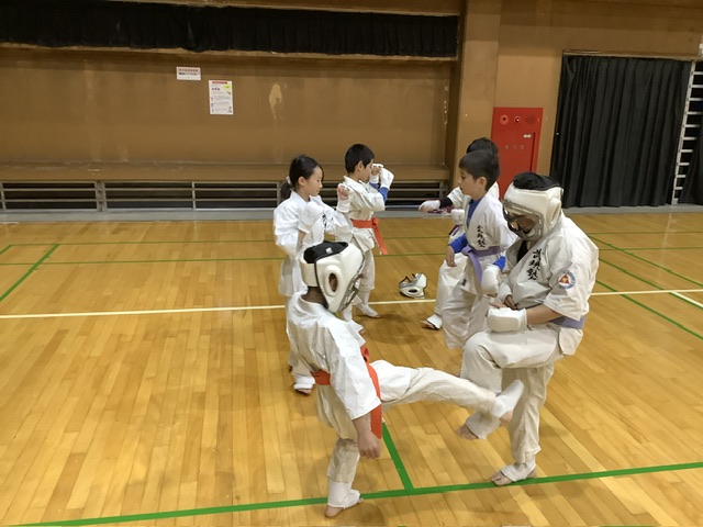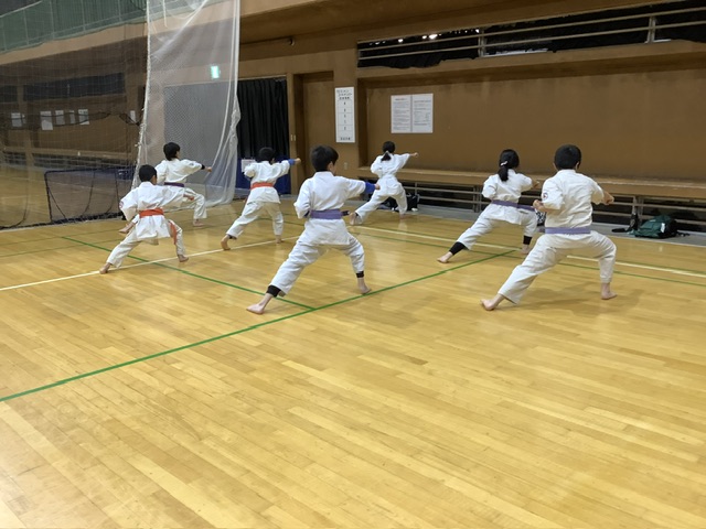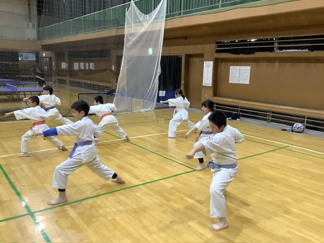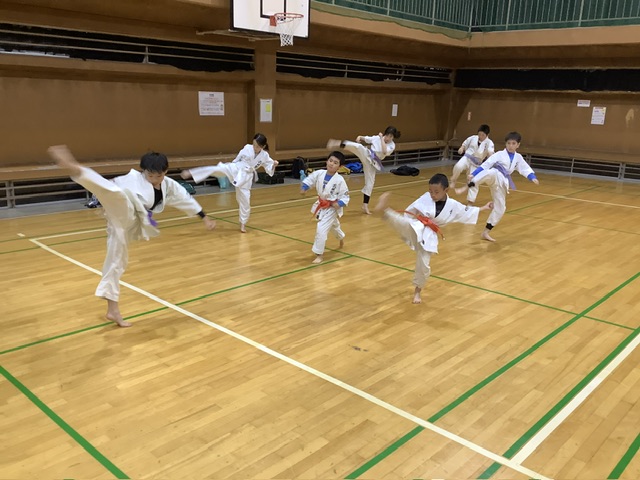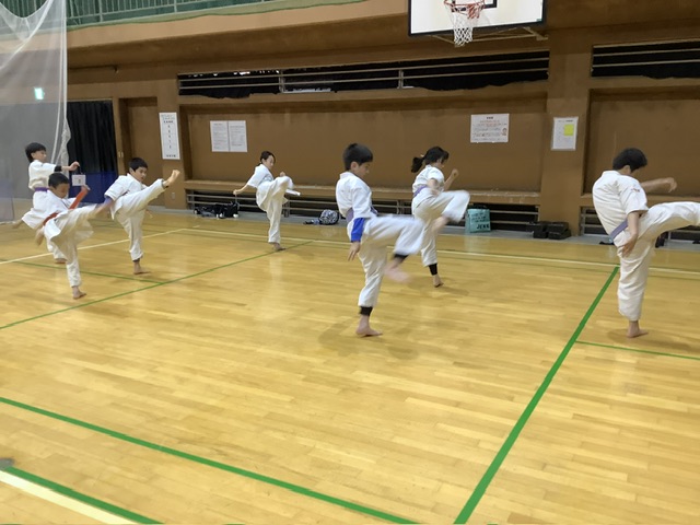 野外ランニング後は体育館へ移動。7名での稽古です。ユイト君が一般部に上がりましたので、タカヒロ君が先頭です。