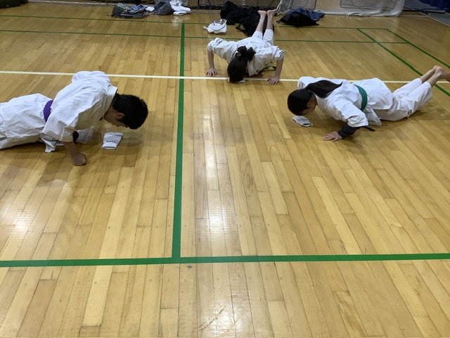 最後に拳立てと腕立て伏せ。50号令数える間に何回できるか?各々、ノルマはクリアーしたようです^_^