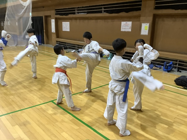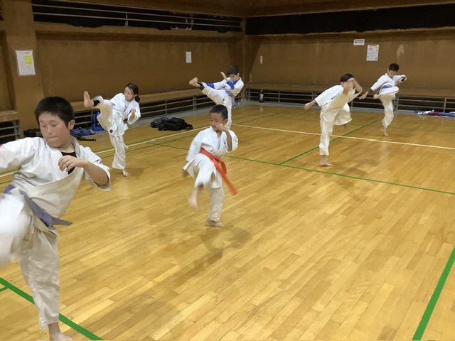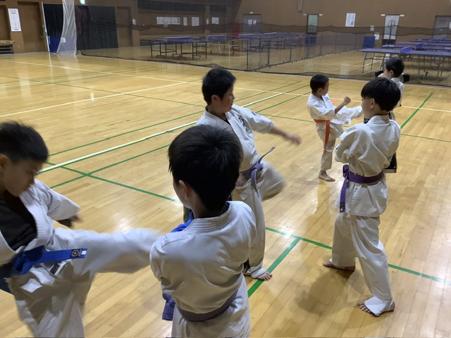 基本稽古後は型稽古。全員で太極1をやった後はトウマ君だけで撃砕。今日から少しずつ覚えて行こうぜ(^_−)−☆