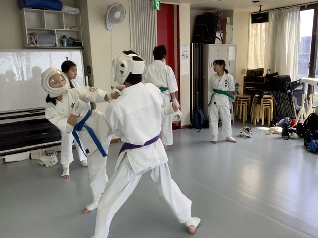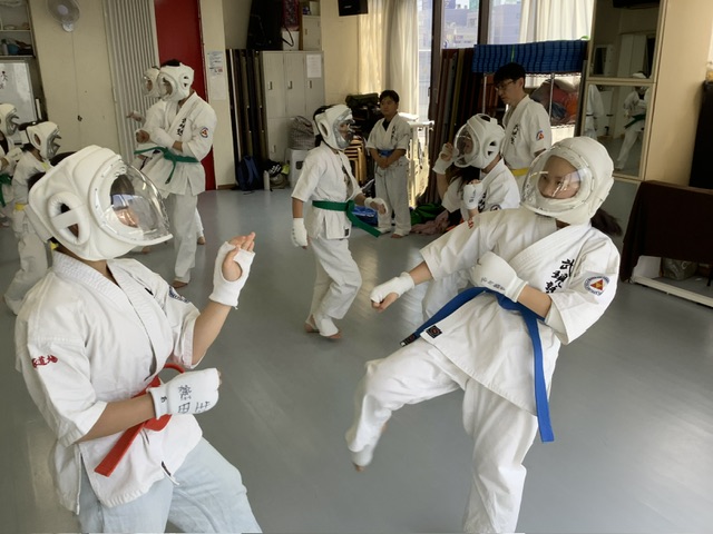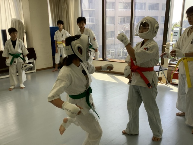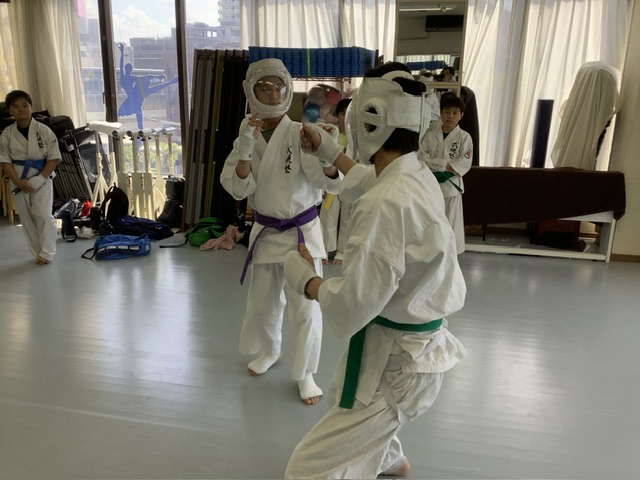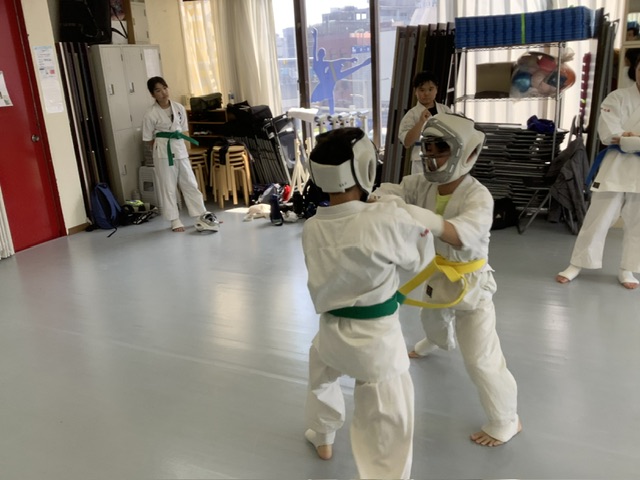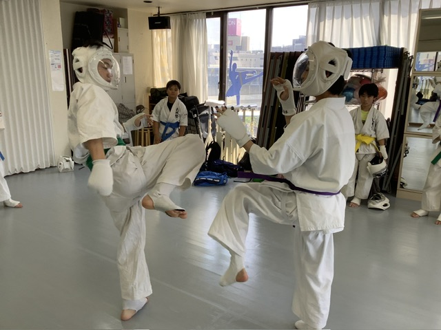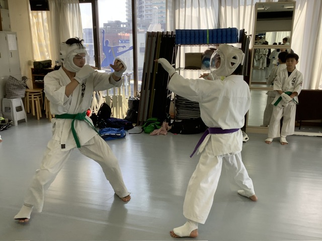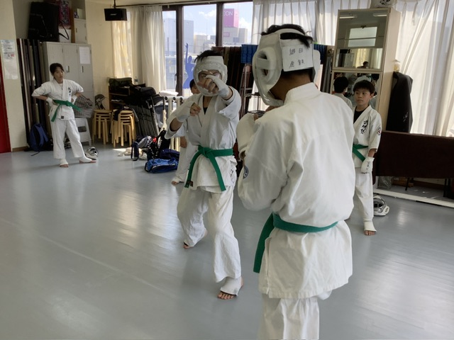 2部。約束組手。奥でヨシヒサ君が足を痛めたようなのでパンチだけ。あえてフットワークを使わせずにやらせます。