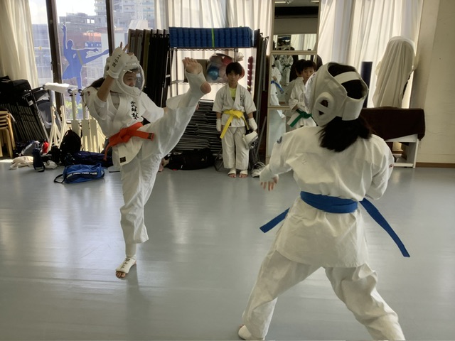 今日はJR稲毛駅前のスタジオアドバンスで午前稽古、少年部からです。