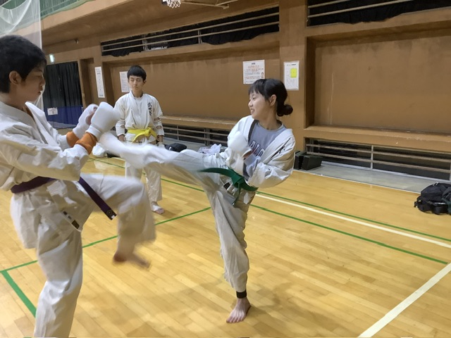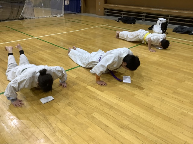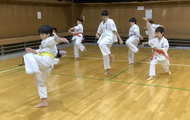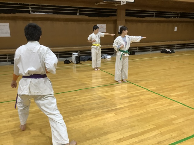 今日もこの3名の稽古でした。外でのランニング後は体育館へ移動して、基本稽古、型稽古、移動稽古と進み、組手稽古で終わりました。来週はキックミットにもっと時間をかけたいと思います。
