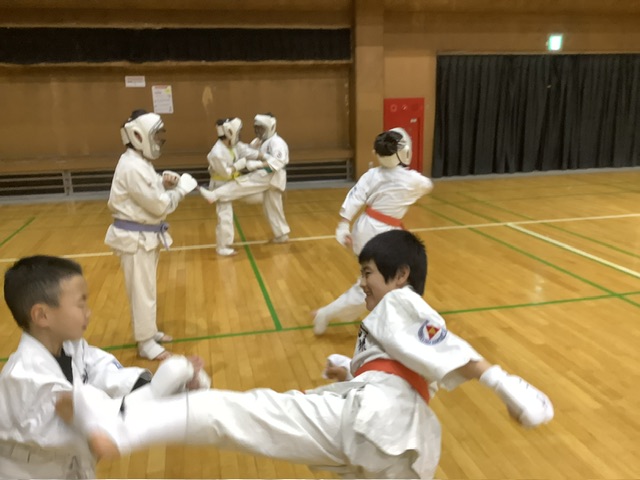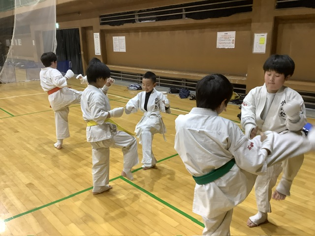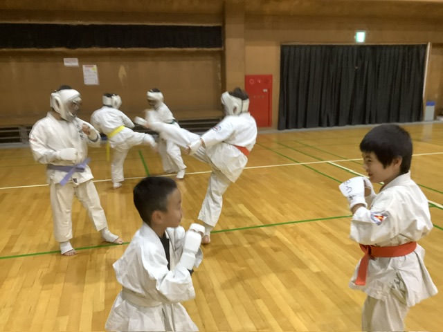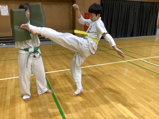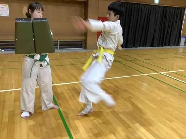 ユイト君、強烈な蹴り!奥の組みのタカヒロ君はパンチだけ。
