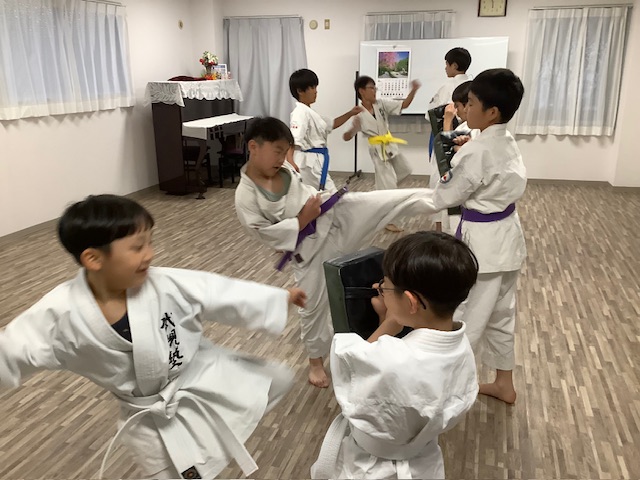 移動稽古では後ろ蹴りをやらせましたが、下級生にはまだ難しい感じでしたね。と言うか上級生でも出来ない子はいますからね。