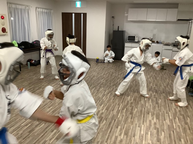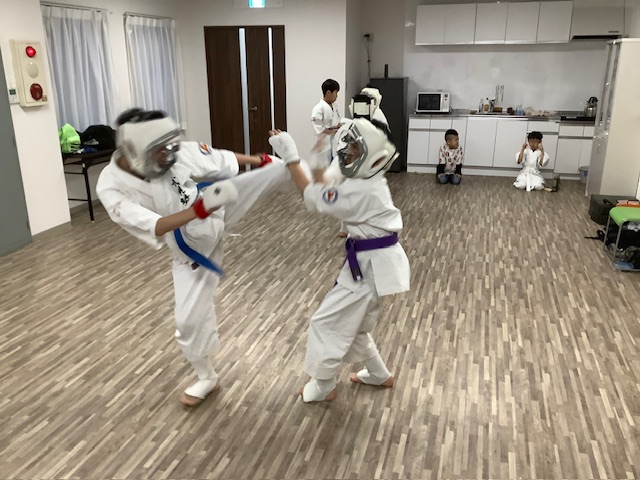 この後、蹴りの移動稽古、組手稽古を行いました。